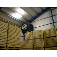 Воздух всасывается в хранилище с помощью вентилятора через впускную заслонку, проходит над контейнерами к противоположной стене, опускается вниз и сквозь контейнеры проходит в обратном направлении, где и выпускается наружу через выпускные клапана.