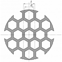 Основное узкое место, сдерживающее производительность зерноочистительных машин – это слабое удаление мелкого сора на подсевных ситах по той причине, что сита с круглыми отверстиями малого размера имеют малую суммарную площадь отверстий, а значит и малое живое сечение. Сама форма круглого отверстия на ситах традиционного исполнения даже при малой величине перемычки между отверстиями не позволяет обеспечить максимально возможное живое сечения из-за перемычек остающихся между отверстиями (рис. 1).