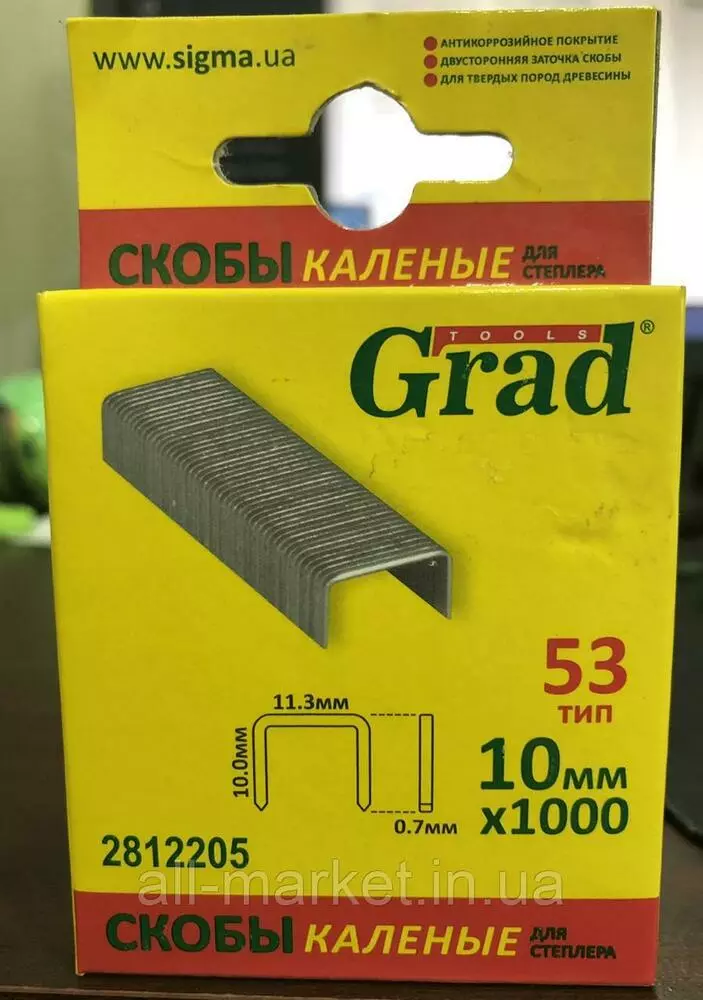 Скобы 10 х 11.3 мм каленые 1000 шт GRAD (2812205)