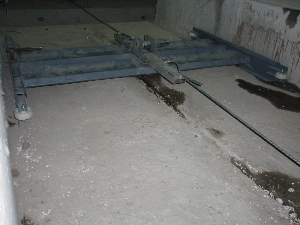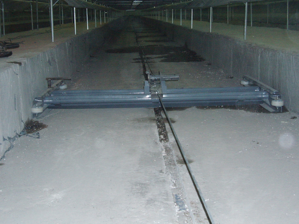 Данный механизм позволяет проводить чистку двух приямков что существенно снижает затраты на уборку крольчатника .