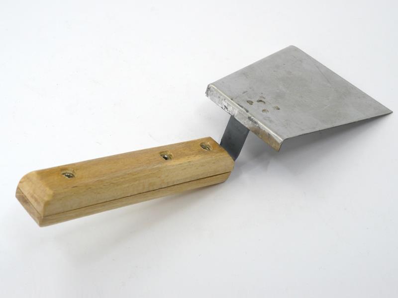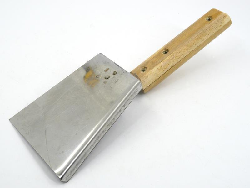 Скребок-лопатка, также известная как лопатка для очистки улья, изготовлена из оцинкованного листового металла, что обеспечивает её прочность и долговечность. Рукоятка выполнена из дерева, обеспечивая удобный и комфортный захват.