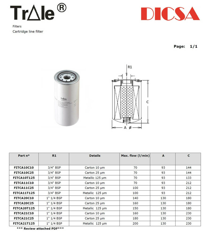 Премиальный высококачественный сменный фильтроэлемент (картридж баночный) DICSA, Испания пропускной способностью 70-200 л/мин 10-125 микрон.