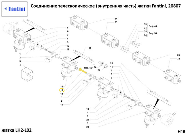 Соединение телескопическое (внутренняя часть) жатки Fantini, 20807 (12918)