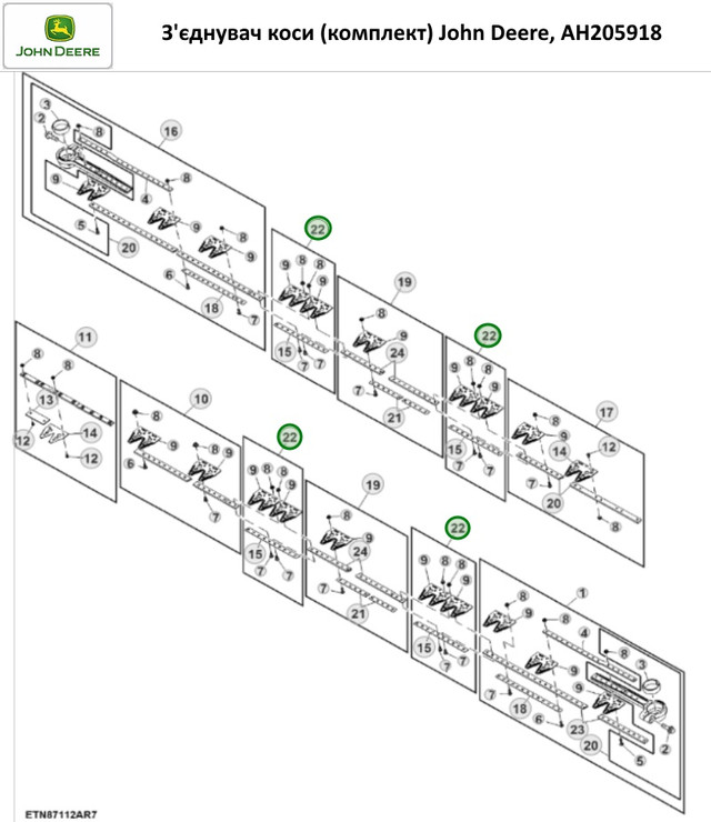 Соединитель косы (комплект) John Deere, AH205918