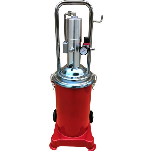 Применяется для нагнетания вязкого масла и других пластичных изделий таких как литол, солидол, циатим в местах трения деталей. Емкость пневматического нагнетателя может вместить в резервуар 12 л смазки, а ее нагнетание происходит благодаря мощному пневматическому приводу. Давление воздуха для откачки вакуумом составляет 30 мПа, а давление воздуха для слива масла от 0 до 0,7 мПа. Аппарат имеет удобные в компактном применении габаритные размеры и небольшой вес в 17кг. А колёса, которыми оснащён нагнетатель смазки, позволяют без всякого малейшего труда транспортировать его по помещению большой автомастерской или СТО.