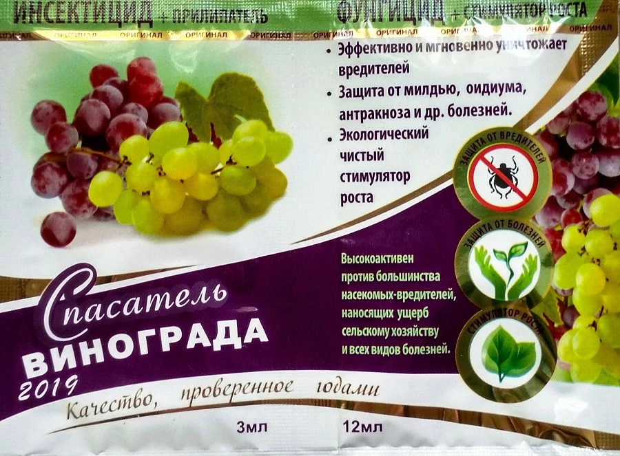 Инсектоакарицид и фунгицид, используется для обработки винограда с целью защиты от насекомых-вредителей и различных грибковых заболеваний. В состав данного средства входит стимулятор роста и удобрение, которые улучшают качество продукции и повышают урожайность до 20-30%. Препарат эффективно действует при повышенных температурах и не наносит вреда растениям и окружающей среде.