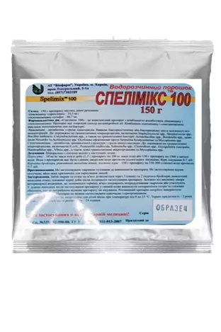 Препарат Спелимикс® 100 можно задавать только поросятам и птице. Растворенный препарат необходимо использовать на протяжении 24 часов. Нельзя применять Спелимикс® 100 вместе с эритромицином.