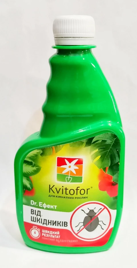 Спрей двойного действия. Удобрение и инсектоакарицидная добавка для уничтожения широкого спектра вредителей: тли, белокрылок, долгоносиков, совок, мучнистых червей, гусениц, щипалок, паутинного клеща, клопов, цикад, блошек и т.д. Действующие вещества: N-95, P-40, K-25, микроэлементы: Fe-70, Cu-5, Mg-40, Mn-14, B-10, Zn-4, Mo-0.3, Co-0.6. Препаративная форма: спрей Способ применения: Лечение: при присутствии вредителей или заметных повреждений растений вредителями опрыскать листья на расстоянии 20-30см. Через 5-7 дней обработать повторно. Профилактика: растения, приобретённый в магазинах и оранжереях, и растения, которые вынесли на улицу, опрыскивать раз на два месяца.