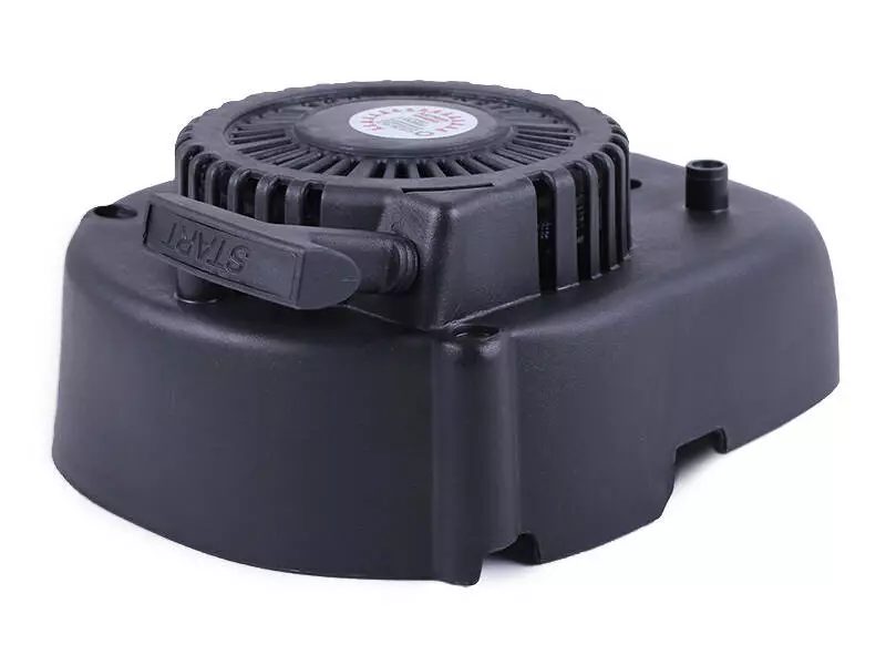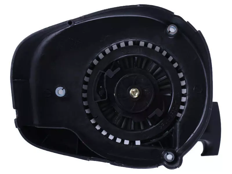 Стартер ручной TATA на бензиновый двигатель P70F – оригинальная деталь заводского Производства. Данный вид стартера является самым распространенным для маломощных двигателей с низкой компрессией. Назначение и применение Используется для запуска силового агрегата за счет ручной силы человека. Состоит из пластикового кожуха с вентиляционной решеткой, катушки для намотки шнура стартера и возвратной пружины. Конструкция преобразует поступательное движение шнура во вращательное движение коленвала. Последний через стакан стартера взаимодействует с катушкой стартера. К возможным поломкам относятся перетирание или обрыв шнура стартера вследствие неаккуратного обращения, выход из строя возвратной пружины по причине усталости металла, поломка пластиковых зацепов катушки при чрезмерно резком рывке веревки стартера.