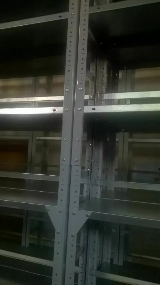 Профилированные полки с высотой борта 25 мм крепятся к стойкам