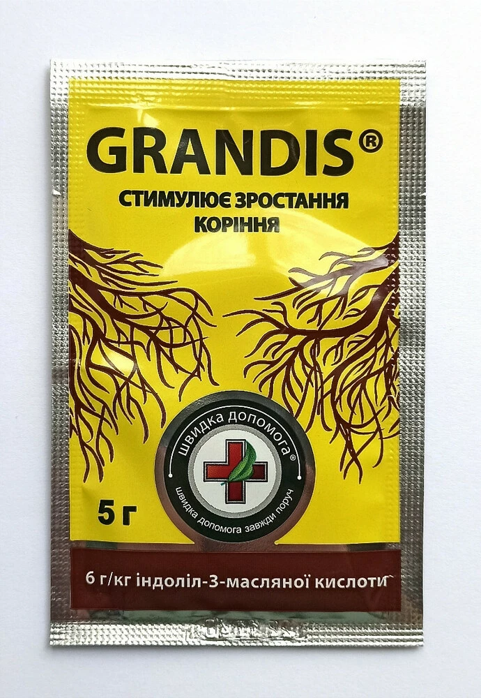 Стимулятор роста корней Грандис, изготовленный в виде порошка, применяется для укоренения саженцев и черенков всех видов растений, с целью развития корневой системы, а также ускорения прорастания семян. Данный стимулятор содержит в составе индолил масляную кислоту, аминокислоты, витамины В1,В2, В3, В5, С, которые необходимы для быстрого создания мощной и здоровой корневой системы. Препарат помогает растению быстрее адаптироваться на новом месте после пересадки, ускоряет их рост, способствует приросту общей урожайности, а также повышает иммунитет и стойкость к неблагоприятным погодным условиям. Помимо этого, при внесении средства в почву, растение получает дополнительное питание для роста, развития и обильного плодоношения, а также черенки и саженцы быстрее приживаются, а семена дают дружные всходы.