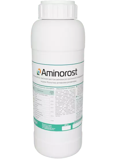 Стимулятор росту рослин Aminorost – комплексний препарат, який містить набір основних вільних амінокислот рослинного походження, отриманих шляхом ферментативного гідролізу. Також до складу препарату входять інші біологічно активні речовини (вітаміни групи В, фітогормони, органічні кислоти та ін.).