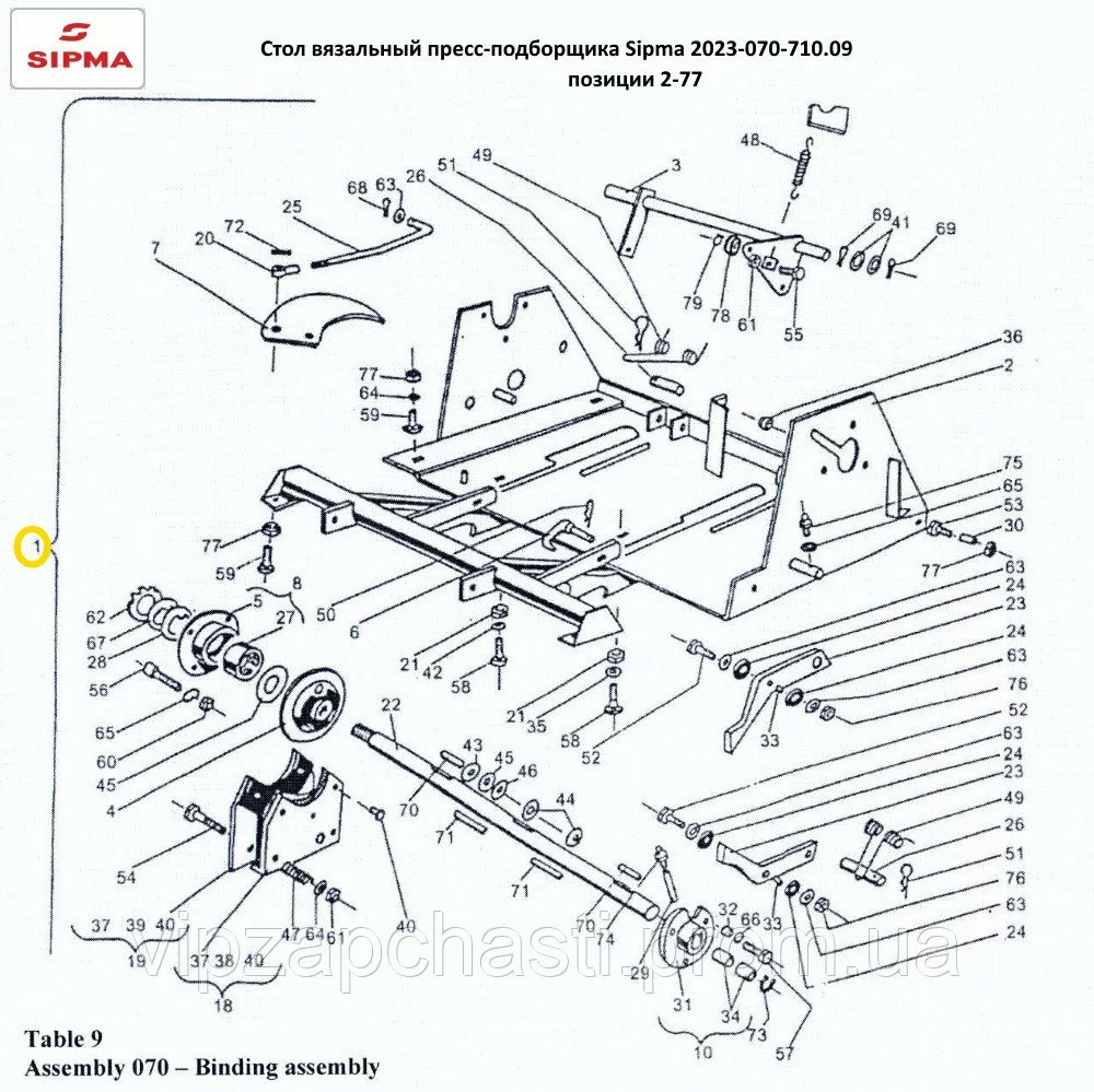Запчасти на стол пресс-подборщика Sipma