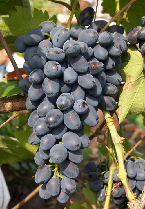 НАДЕЖДА АЗОС - сорт винограда столового назначения, раннесреднего срока созревания. Созревает преимущественно в третьей декаде августа. Кусты сильнорослые. Цветок обоеполый. Урожайность 160 центнеров с гектара. Грозди средней плотности или рыхлые, конические или ветвистые (весом 400-600 г). Ягода удлиненно-овальная, простого вкуса, синяя (черная) - 6-8 г, гармоничного вкуса. Сахаристость 15-17%, кислотность - 7-8 г/л. Сорт винограда Надежда АЗОС устойчив к милдью, серой гнили ягод, повышенная устойчивость к оидиуму. Средней или ниже средней зимостойкости. На один побег приходится 1,6 соцветия. Черенки Надежды АЗОС слабо окореняются. Имеет высокие показатели товарности и транспортабельности. Селекция: АЗОС, Анапа.
