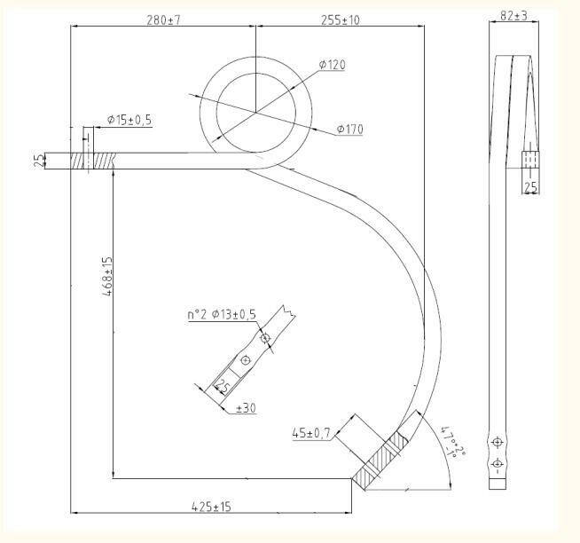 Стойка двухспиральная 25х25мм h=435, Q25SVV SX, 304551, 2481S левая (Италия)