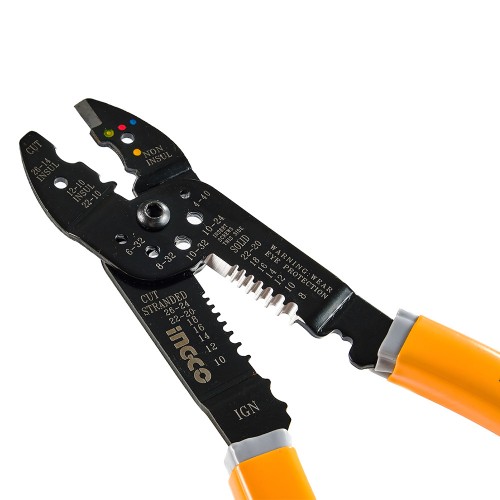 Стрипер багатофункціональний 215 мм INGCO застосовується для зачистки та різання різних видів кабелю, а також для відрізання латунних болтів, обтиску ізольованих і автомобільних клем. Він допоможе швидко і акуратно обробити дроти перед їх з'єднанням без пошкодження.