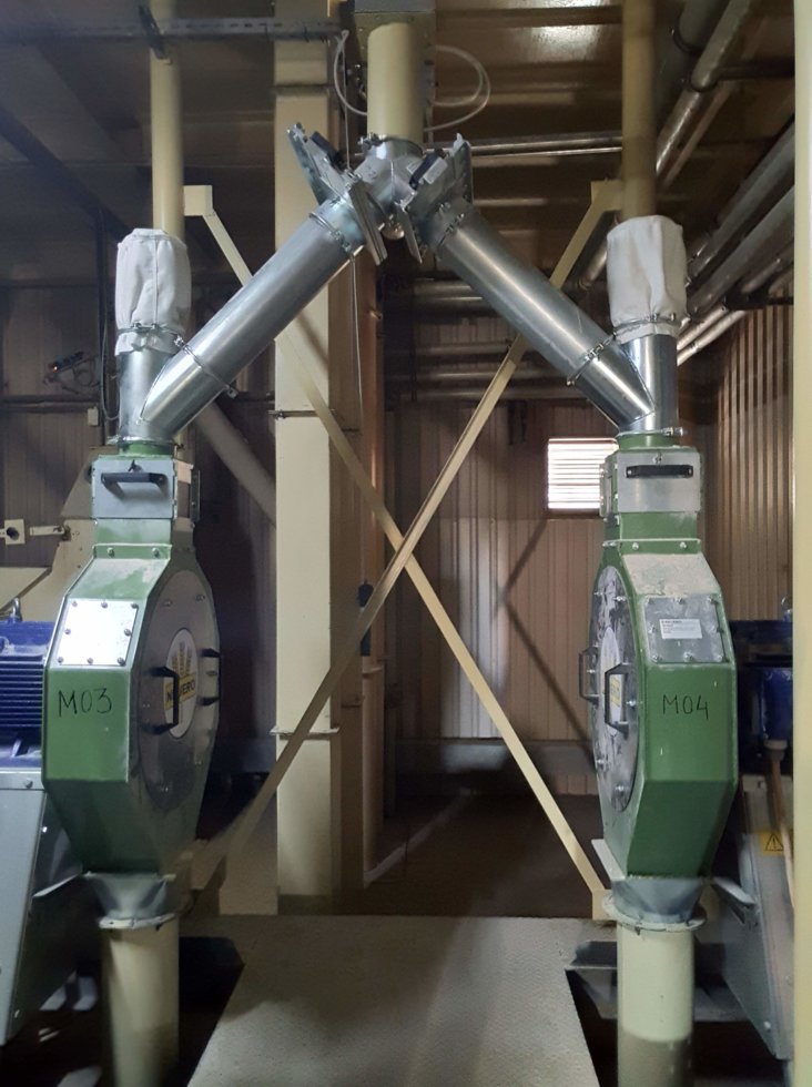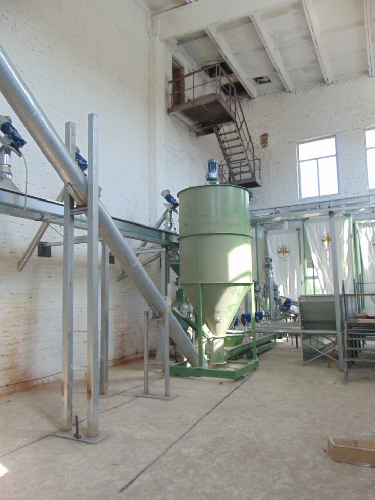 Большие комбикормовые комплексы (производительностью от 10 т/час и выше) можно укомплектовать шахтными зерносушилками, техникой для очистки зерна и металлическими силосами для хранения зерна.линия для приготовления комбикорма