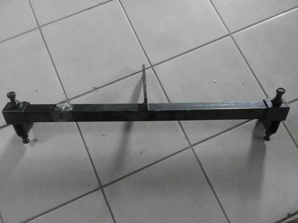 Теперь рассмотрим, как устанавливается сцепка на мотоблок. Для этого скобу сцепки нужно соединить со скобой мотоблока, а затем зафиксировать крепежными штырями. Кроме того, для большей надежности желательно использовать распорные болты, которые крепят к раме мотоблока враспор.