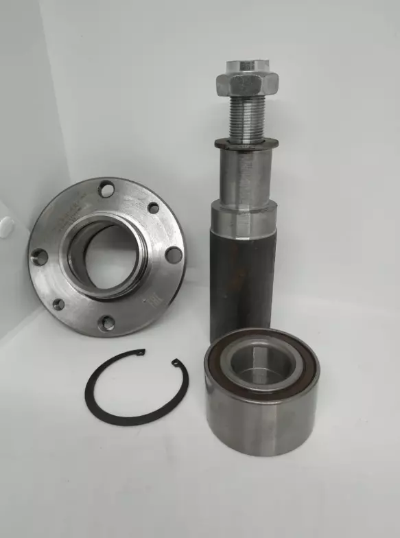 Ступица выполнена из стали марки 45, что обеспечивает высокую прочность, износостойкость и устойчивость к деформациям во время эксплуатации. Она имеет стопорное кольцо, надежно фиксирующее подшипник в корпусе, предотвращая его смещение при работе. Внутри установлен двухрядный подшипник типа 303760, имеющий увеличенную грузоподъемность и обеспечивающий плавный ход без люфтов. Благодаря такой конструкции ступица отлично выдерживает длительные нагрузки и подходит для эксплуатации в условиях украинских дорог.