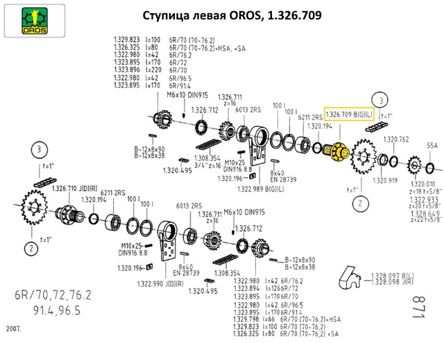 1.329.823 . . . . . . . звездочка z-16, l-100 6R/70 (кукурузная жатка OROS)