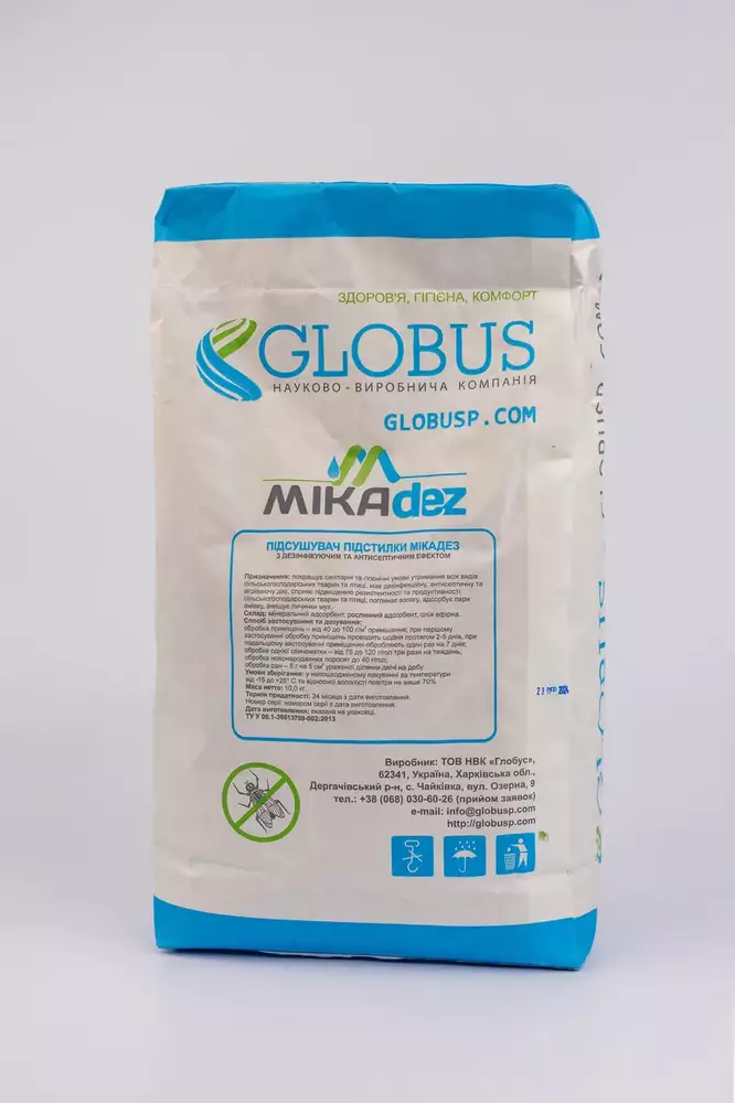 МІКАДЕЗ – сухий гігієнічний наповнювач для осушення підстилки, який покращує санітарно-гігієнічний стан середовища для вирощування сільськогосподарських тварин і птиці.