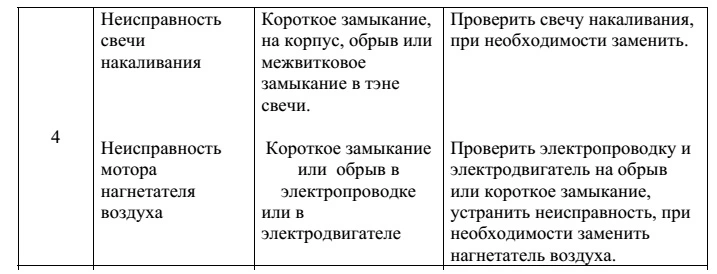Код неисправности свечи накаливания - 4 мигания светодиода на пульте управления отопителя.