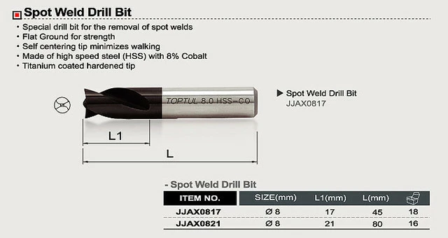 Сверло для точечной сварки 8х80мм TOPTUL JJAX0821