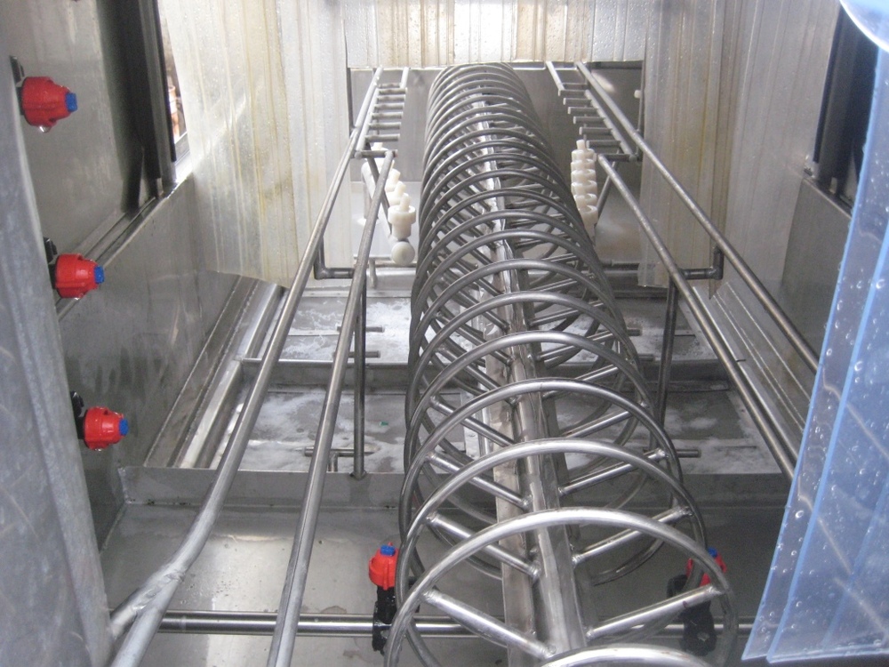Данная машина предназначена для мытья и ополаскивания многооборотной тары (пластиковых ящиков), применяемых в пищевой промышленности. Машина может обрабатывать ящики разных размеров с разницей в высоте до 420 мм без предварительной сортировки.