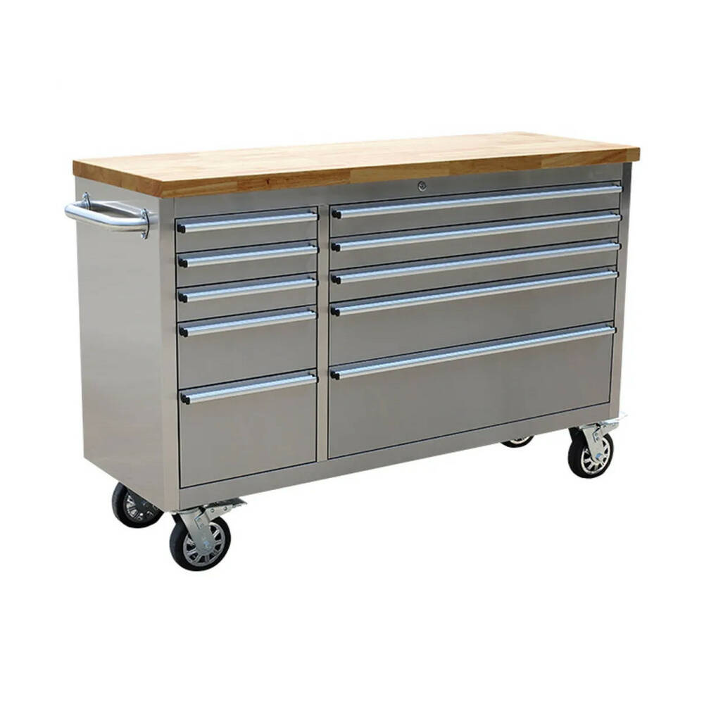 Профессиональная мастерская тележка TORIN TBR5610-S сочетает массивную стальную конструкцию с большой рабочей поверхностью с деревянной столешницей. Предназначена для интенсивной работы в сервисах, мастерских, производственных цехах и оснащённых гаражах.