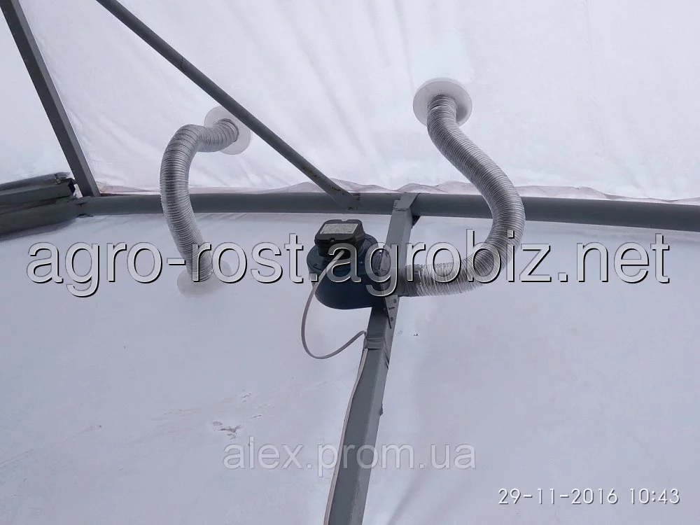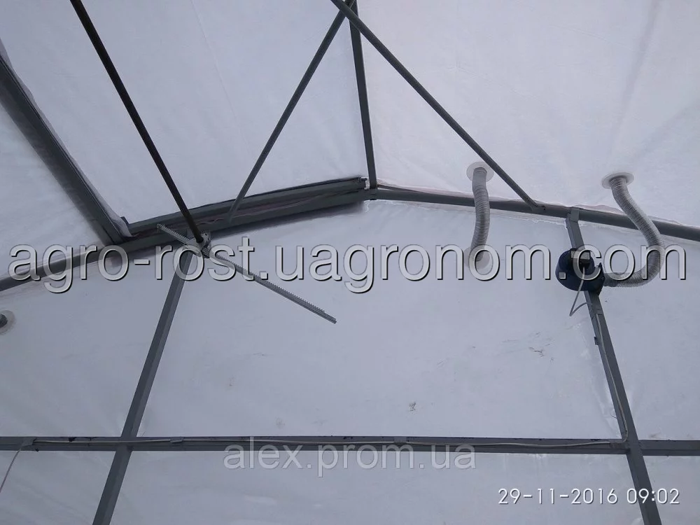 вверху купола теплицы и подает его в пространство между двумя