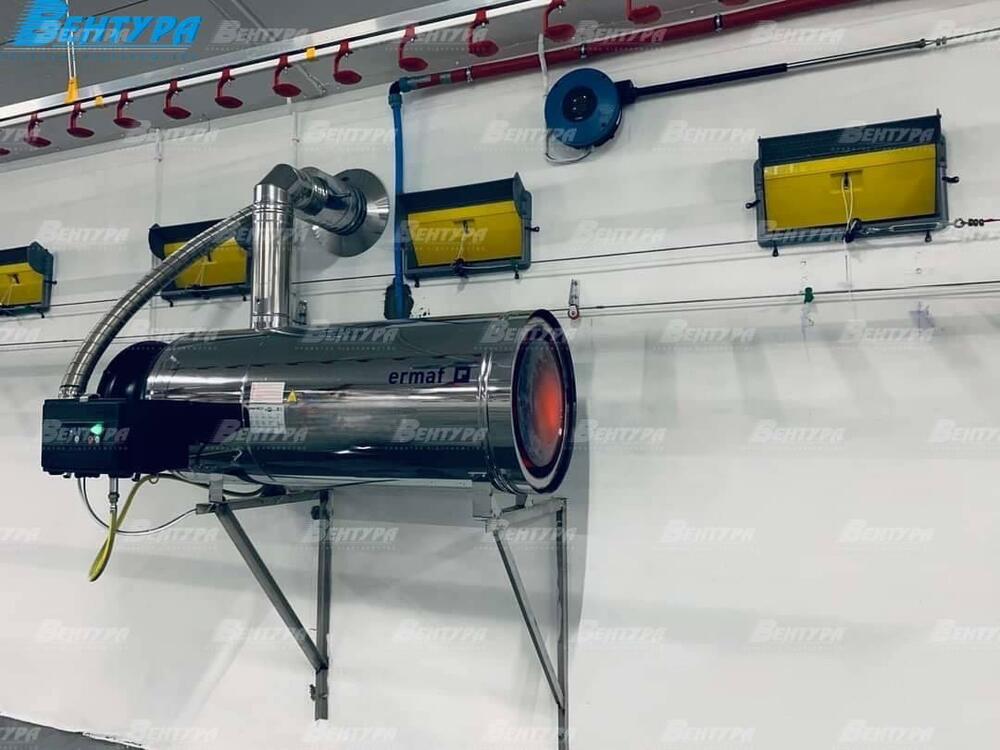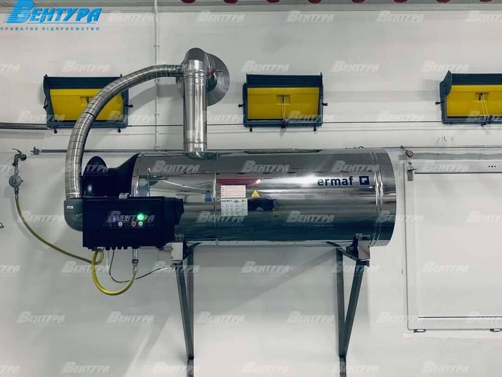 Дизельный обогреватель ERMAF P100 кВт предназначен для отопления помещений с большой площадью, то есть складов, производственных цехов, животноводческих помещений. Обогреватель Ermaf оборудован аварийной сигнализацией и термостатом, который гарантирует постоянную температуру в помещении. Теплогенератор дизельный 100 кВт предназначен для зданий, площадь которых не превышает 2000 м2. Обогреватель ERMAF P100kW работает на дизельном топливе.