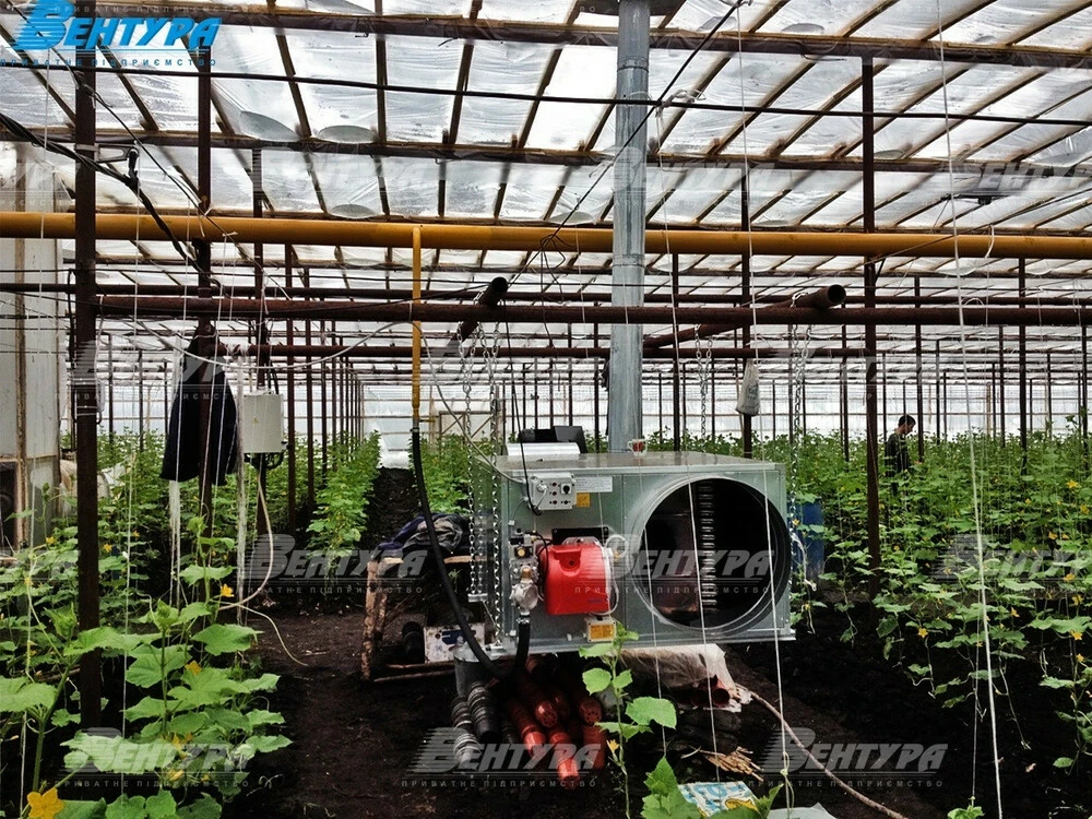 Используется для обогрева складов, ангарів з технікою, ферм, птицефабрик, теплиц, предназначенный для помещений большой кубатуры.