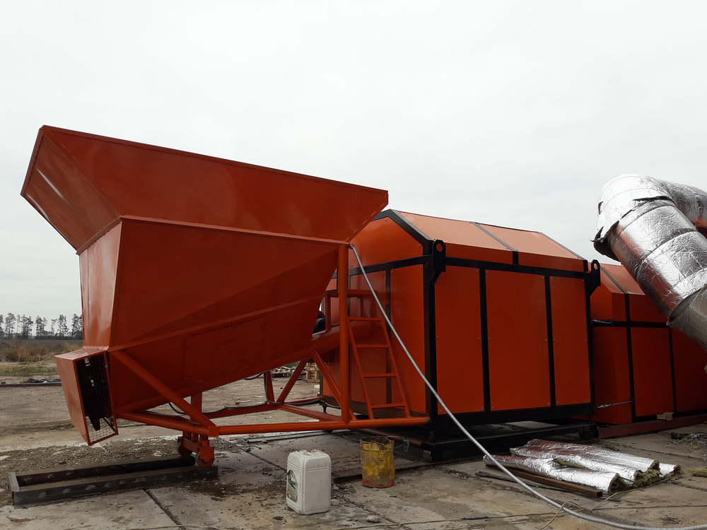 Шнековая подача топлива и продуманная система управления обеспечивают стабильную работу, чистка теплогенератора производится раз в сутки через технологический люк, при этом процесс сушки не прерывается.
