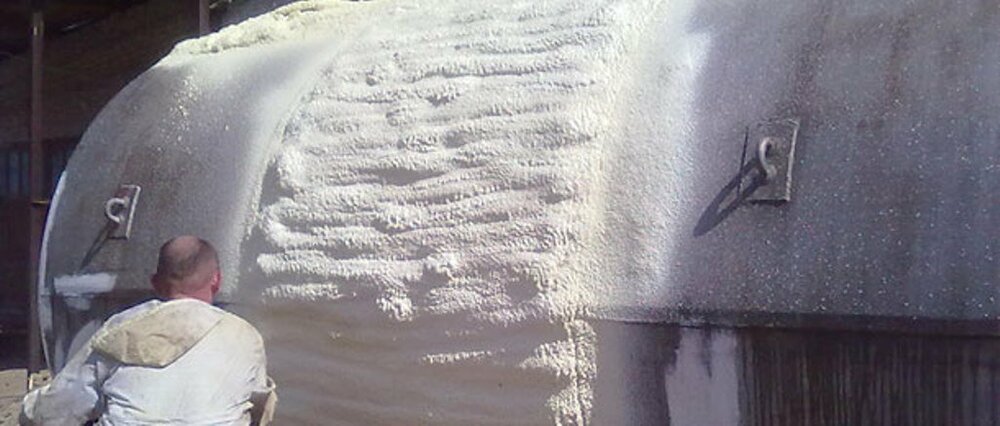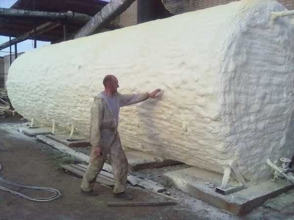Теплоизоляция резервуаров — это довольно трудная задача, так как они имеют сложную геометрическую форму, отсутствует возможность традиционного монтажа, температурные режимы время накладывают жесткие ограничения на применение клеевых составов. Использование различных рулонных минераловатных утеплителей с последующей перетяжкой приводит к большим теплопотерям, а их срок эксплуатации приблизительно становит три года, при этом учитываются жесткие перепады температур и постоянное выпадение конденсата. Поэтому единственным экономически целесообразным способом утепления таких емкостей является метод напыления пенополиуретана (ППУ).