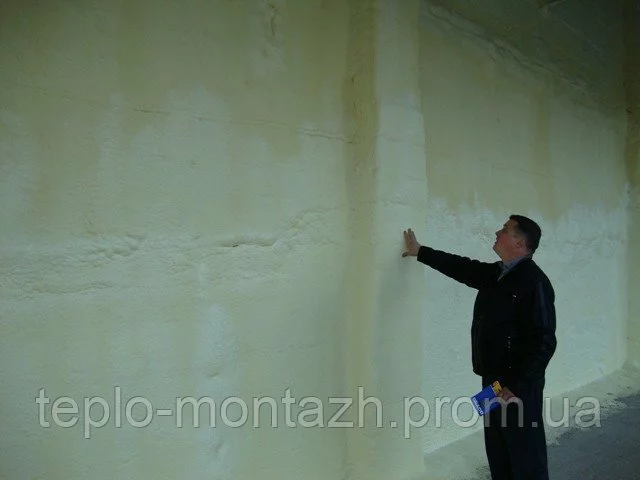 При утепление(термоизоляции) пенополиуретаном складских и производственных помещений достигается максимальный эффект сбережения температуры. Работы выполняются за кратчайшие сроки 400 – 200 м2 за смену, оборудованием Graco