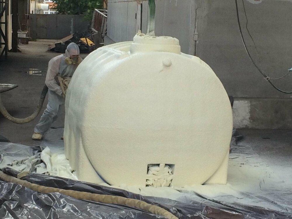 Пенополиуретан наносится на поверхность слоями до приобретения необходимой толщины, которая на разных участках емкости может отличаться согласно с технической документацией. Высокие показатели адгезии (прилипание лакокрасочного материала к окрашиваемой поверхности) дают возможность применять данный материал на каких угодно поверхностях.