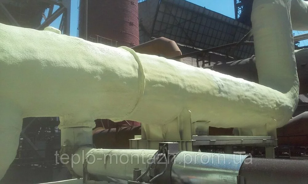 Утепление, термоизоляция, газоизоляция, гидроизоляция, защита от коррозии — методом напыления пенополиуретана на трубопровод.