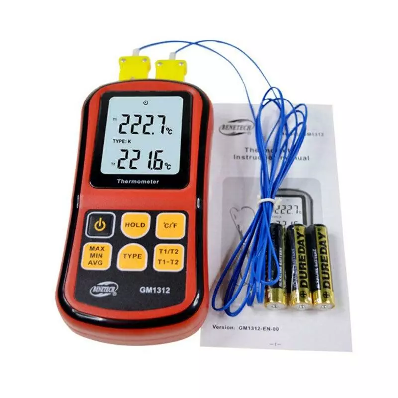 ДВУХКАНАЛЬНЫЙ ТЕРМОМЕТР С ТЕРМОПАРОЙ ТИПА K BENETECH GM1312