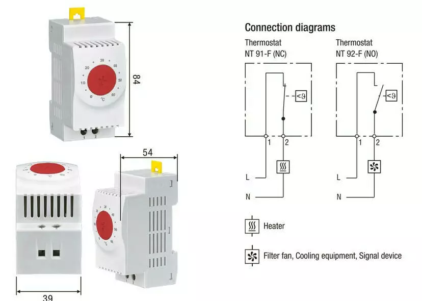 NT 91-F: Термостат (контакт нормально замкнутый); контактный прерыватель для регулирования нагревателей. Контакт размыкается при повышении температуры
