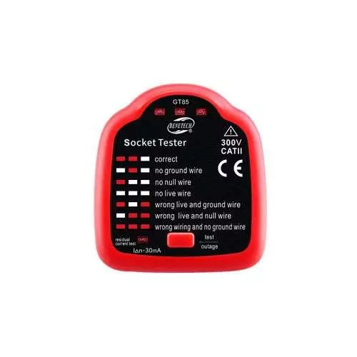 Тестер GT85 — компактное и простое в использовании устройство, предназначенное для быстрой диагностики электрических розеток и проверки работы устройств защитного отключения (RCD). Позволяет проверить правильность подключения проводов в розетке и оценить безопасность электрической сети.