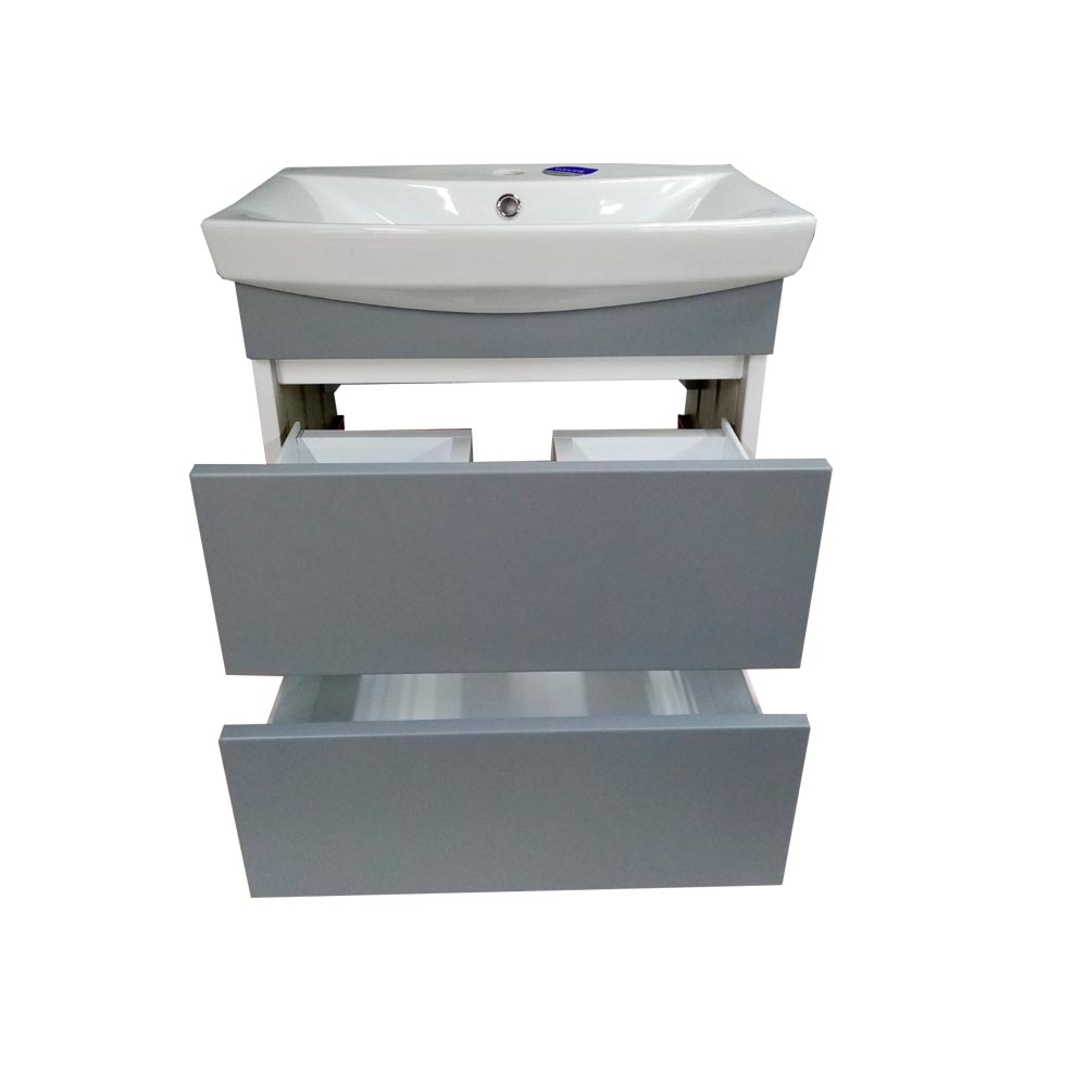 Пластиковый корпусФасад МДФвыдвижные ящики с механизмом плавного закрытиякерамический умывальник Карина фабрики Церсанит