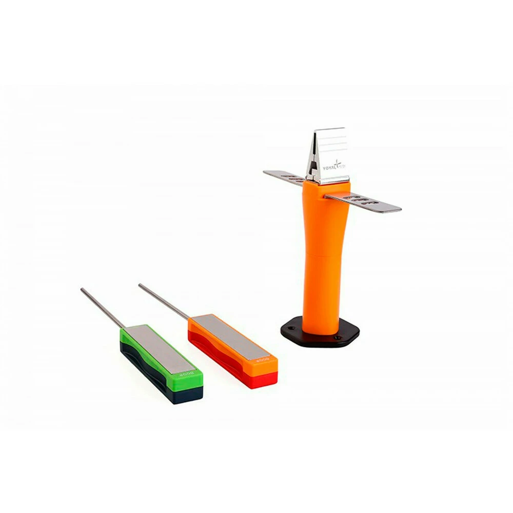 Несмотря на свою компактность и разборную конструкцию заточное устройство TY1811 обладает возможностью многоступенчатого восстановления режущей кромки и фиксации угла заточки лезвия. Эта способность достигается тем, что в комплектацию данной модели входят алмазные бруски зернистостью 360, 600, 800 и 1000 grit.