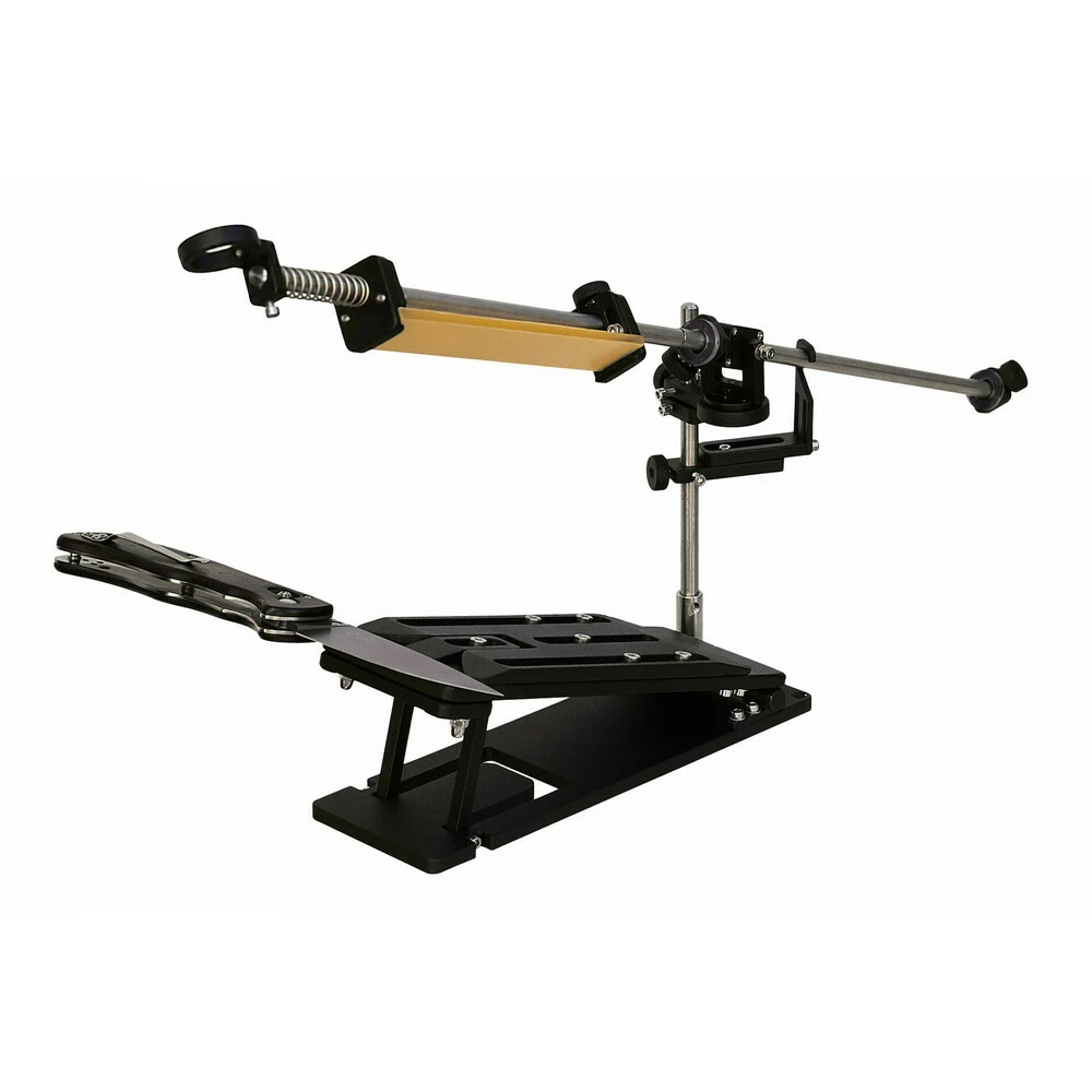 • Захватно-удерживающий узел для клинка предназначен для того, чтобы однократно закрепить нож, и, закончив заточку одной стороны перейти сразу к следующей. То есть, вынимать ничего не надо, нужно просто нажатием отпустить пружинный механизм, и перевернуть, так и оставшийся  в зажиме-держателе нож, практически без остановки продолжая заточку.