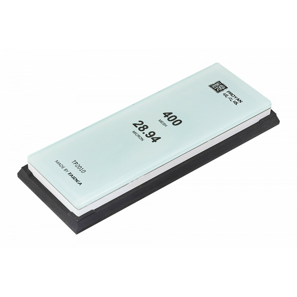 Точильный камень зернистостью в 400 grit в процессе заточки снимает металл довольно активно и в больших количествах. По этой причине рекомендовано использовать его либо при починке сильно повреждённых режущих кромок, либо на начальных этапах заточки заметно затупившихся клинков.