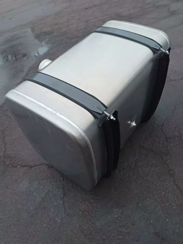 Топливный бак Мерседес Бенз 650 л/ Fuel tank Mercedes Benz 650 lt - ёмкость для хранения запаса жидкоготоплива (бензин, керосин, дизельное топливо) непосредственно на борту транспортного средства или технического устройства, получающего энергию от жидкотопливного двигателя внутреннего сгорания. При изготовлении баков используется алюминий высокого качества.