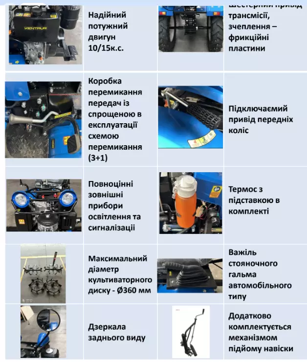 | Гідравлічні виходи для підключення навісного обладнання | Немає |