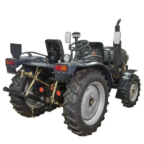 Полноприводный универсальный трактор мощностью 24 л.с. – оснащен трехцилиндровым двигателем с вертикальным расположением цилиндров. Полупрозрачный циклон позволяет следить за загрязненностью воздушного фильтра. На тракторе установлено гидравлическое рулевое управление (ГОРУ) для удобного и комфортного управления. Формула переключения передач – (4+1)х2. Задняя навесная система модернизирована и имеет усиленные нижние тяги.