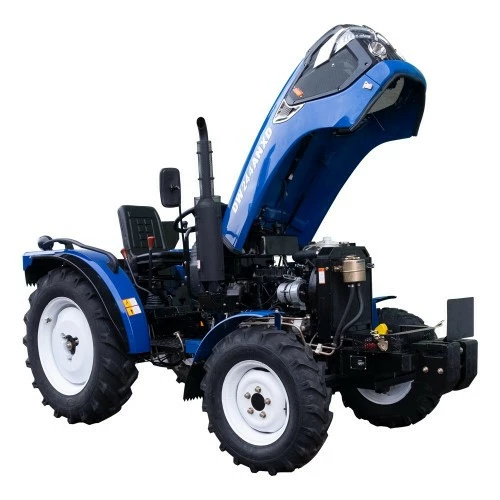 Полноприводный универсальный трактор мощностью 24 л.с. – оснащен трехцилиндровым двигателем с вертикальным расположением цилиндров. Оснащен сцеплением двойного действия и колесами увеличенной ширины. Полупрозрачный циклон позволяет следить за загрязненностью воздушного фильтра. На тракторе установлено гидравлическое рулевое управление (ГОРУ) для удобного и комфортного управления. Формула переключения передач – (4+1)х2. Задняя навесная система модернизирована и имеет усиленные нижние тяги.