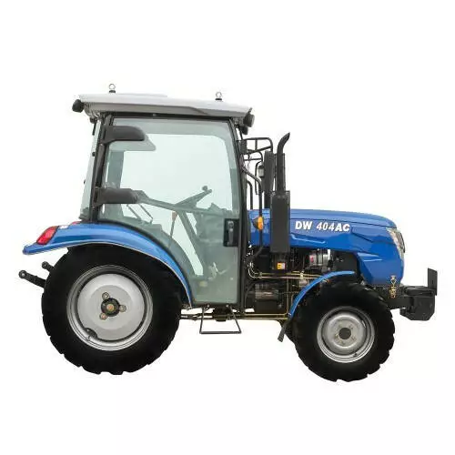 Новейшая разработка в линейке полноприводных тракторов DW отличается высоким уровнем комфортности работы водителя, современным дизайном и расширенной комплектацией. Имеет двигатель 40 л.с. с модернизированной коробкой передач на 8 скоростей переднего хода и 2 скорости заднего. Обеспечивает высокий уровень комфортности работы водителя во время профессионального использования в течение полного рабочего дня за счет более просторного рабочего места и удобного, эргономичного расположения органов управления. Трактор имеет отдельные гидравлический насос и масляный бак для рулевого управления, усовершенствованный фильтр очистки топлива, усиленные крепления дисков задних колес и поворотные шарниры переднего моста. Воздушный фильтр и выхлопная труба размещены выше зоны опыления. Усовершенствованы также приводы генератора и насоса системы охлаждения, современные эффективные линзовые фары. Кабина на тракторе DW 404AC удобная, с круговым остеклением и системами обеспечения микроклимата, дополнительными фарами, комфортным регулируемым креслом с ремнем безопасности.