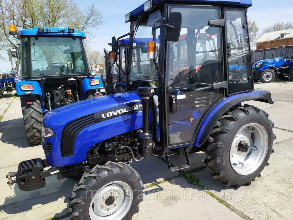 Полноприводный минитрактор Lovol Foton 354 cab оснащен атмосферным дизельным 4-цилиндровым двигателем 4L22BT с принудительной системой охлаждения. Мощность двигателя 35 л.с., а его объем — 2350 см3. Реверсивная коробка передач (8+8) с 2-дисковым сцеплением. Объем топливного бака — 38 л. Вал отбора мощности мини-трактора — 540/1000 об/мин. Воздушный фильтр — мокрого типа.